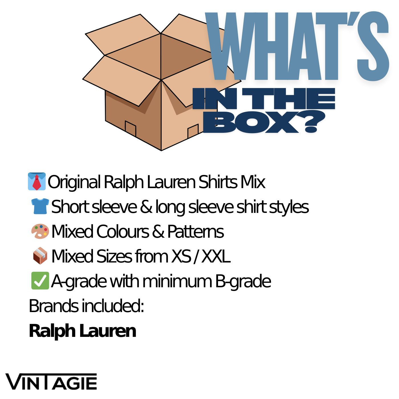 Bij ons shop je tweedehands kleding per stuk. Jij bepaalt precies welke items je wilt — het enige wat telt is dat je minimaal 5 stuks bestelt per categorie. Daarna mag je zelf kiezen hoeveel extra items je toevoegt, wij sorteren een leuke box met een mix van deze categorieën.